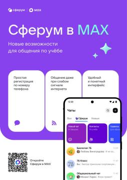 MAX — российский национальный мессенджер, в котором теперь доступен Сферум. Сферум является безопасным пространством для образовательной коммуникации.